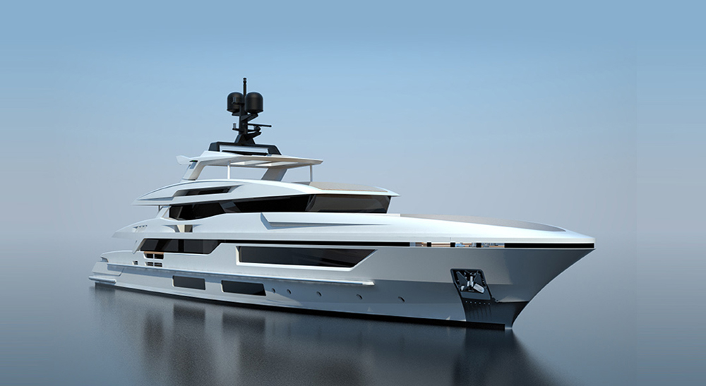 Once again, the yacht is being styled by Florentine architect Francesco Paszkowski with whom the yard has been working for many years and features many classic Baglietto displacement yacht styling cues. Long windows stretch along not just the main and upper decks but also the lower one also. Another strong feature of the exterior styling is the imposing bow area which is raked all the way up to the upper deck.