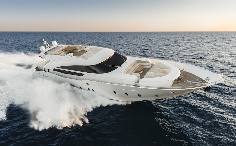 She was built by the Viareggio yard which has been part of the Fipa Group since 2001 and is synonymous with water jet propulsion which it describes “the best choice for boats that want to combine excellent performance with a seafaring lifestyle based around comfort and safety”.
