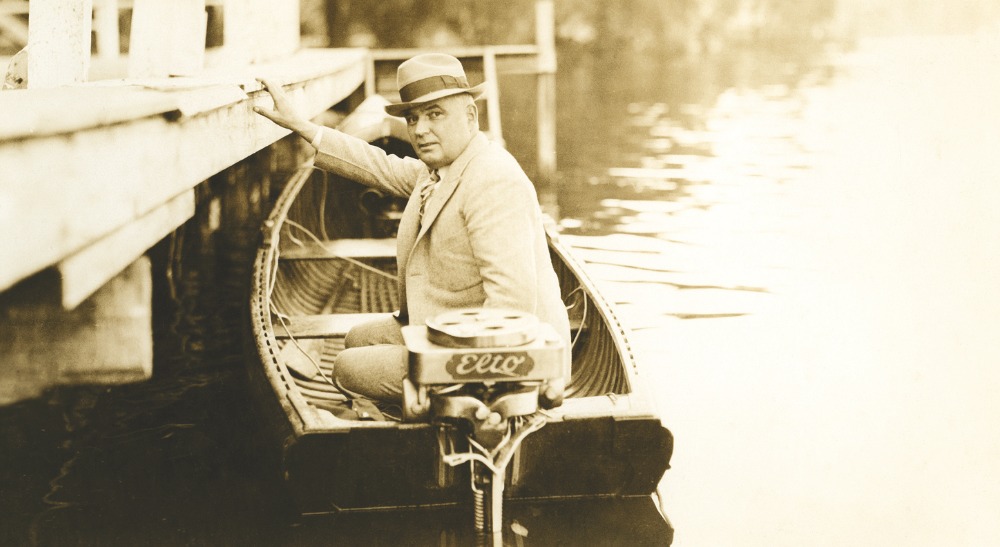 No sooner said than done. Or almost, at least. Big Ole, as everyone called our hero, didn’t need to hear her ask twice; he jumped in the boat and started rowing towards town. It was two and a half miles there and another two and a half back. Out of breath, Big Ole handed the, by now, almost melted ice cream to Bess and said: “Someone should invent an engine for these boats!” and added, “Maybe I could do it.”This man was Ole Evinrude. We could also tell you that, two years later, Ole Evinrude married (yes, he married Bess!) and then became father to young Ralph. Along with his brother-in-law Russ, he hired an old rowing boat for 50 cents and tested his new invention: a small noisy contraption attached at stern. “It’s like a coffee grinder”, said Bess. However, it worked. The boat moved without rowing! Over the winter, Ole perfected his prototype and in 1909 manufactured by hand the first series of engines. Power: one and a half HP. Weight: 62 pounds (27 kilos). Price: 62 dollars. In the summer of 1909, Bess wrote the first advertising slogan and paid for its insertion in a Milwaukee paper. It read, “Enough rowing! Throw away your oars! Use an Evinrude engine”. All twenty-five engines were sold in an instant and the Evinrudes decided to venture into the world of industrial manufacturing.