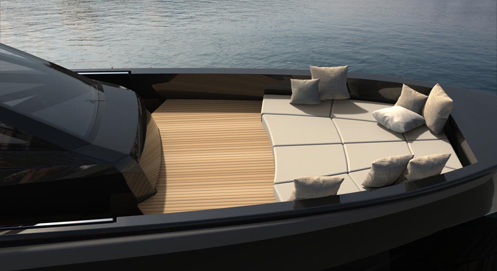 The first creation is called Baby, a 13 meter tender with sporty and elegant lines. The boat is made in aluminium, a valued material on today’s market. Aluminium’s light weight allows for thinner plates and smaller engines without the need to sacrifice performance and efficiency. The hull has a V structure and a dead-rise angle of 16.8 ° with a variable geometry. The construction of the boat is conceived as that of a light alloy superyacht.