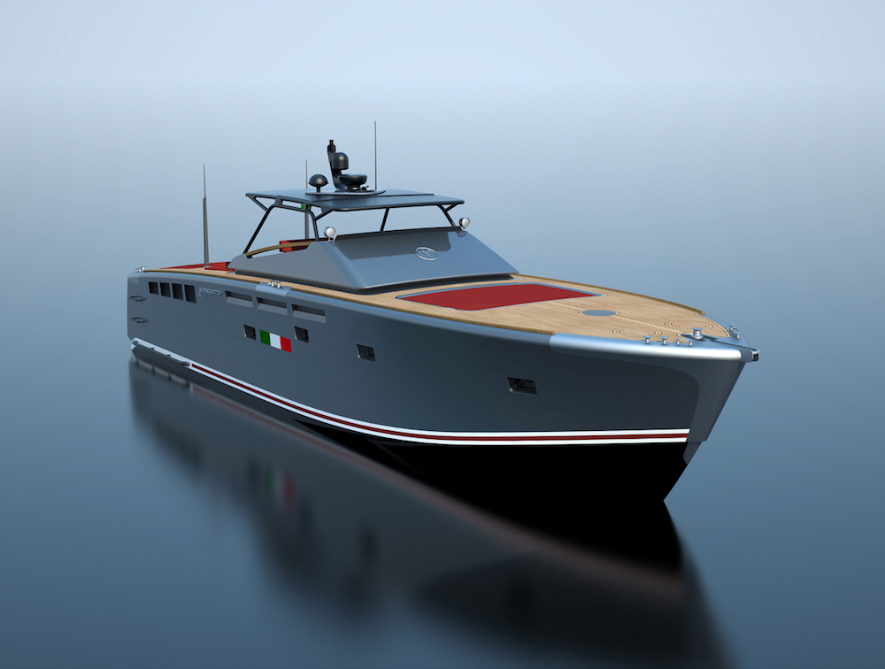 The MV series draws its inspiration from the First and Second World War MAS paying tribute to the military crafts that made the success history of the Liguria-based nautical brand by reinterpreting some of their peculiar features and shapes in a modern style matching them with architectural elements adapted from the open segment. The symmetrical air intakes along the hull free board underline the rigorous style of both Francesco Paszkowski and the Baglietto open lines themselves.