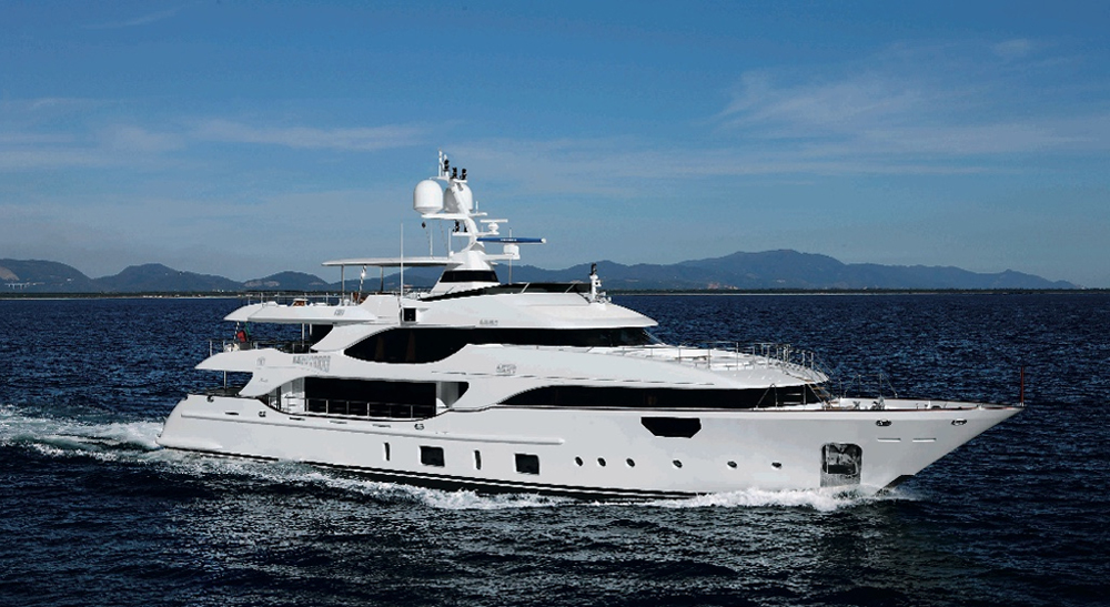 Four decks that are fully liveable, with large areas for socialising that are protected with maximum privacy. The Crystal measures 42 metres in length and 9 metres in width at full beam. Its displacement is 375 tonnes. The engines are twin Cat C32 Acer delivering 1081 kW. And with a fuel reserve of 64,550 litres, the Crystal has a conventional oceanic range of 4,000 miles, which places it among authentic “navetta” that are capable of travelling around the world and exploring locales where autonomy and spending long periods without refuelling becomes essential. Maximum speed at half load is 15 knots, with 14 knots possible at 85% power.