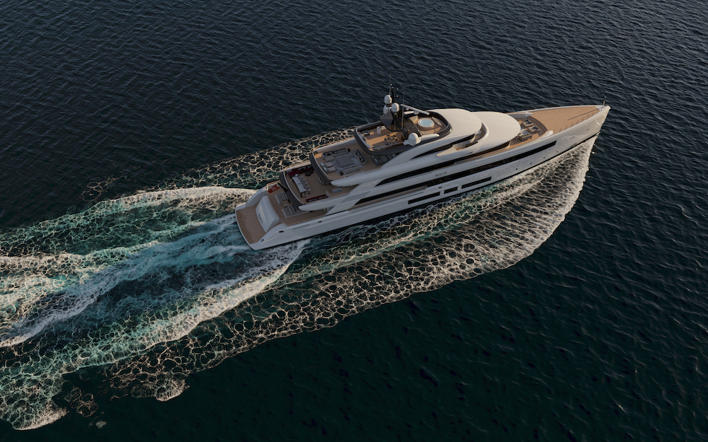 Spaces are all well-arranged and optimized to guarantee exceptional quality and comfort on board. Giorgio M. Cassetta’s style enhances the horizontal development and, therefore, the length of the boat while the harmonious lateral lines streamline the overall mass of the superstructures. The only element that deliberately breaks the continuity of the boat’s line is represented by the bridge wings which, enhanced in their discontinuity by the surrounding surfaces, load the design with personality and exhibit an exquisite combination of form and function. The tails of the decks have been interpreted with an upward momentum and create a feeling of lightening of the superstructure and greater height of the external areas. The result is a hull with an imposing bow and clean and elegant streamlined lines.