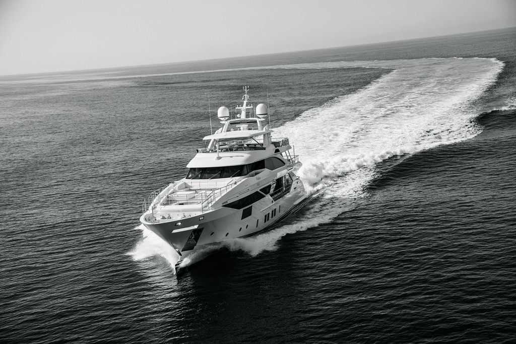 Another benefit of this system is the extremely low level of noise and vibration during navigation. Thanks to the reduced weight of the Azipull unit, the engine room can be positioned further astern, so that the guest cabins are quiet and vibration free. In fact, the Fast 125’ has been granted Comfort Class by Rina, certifying its silence and smooth ride.