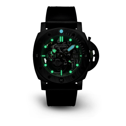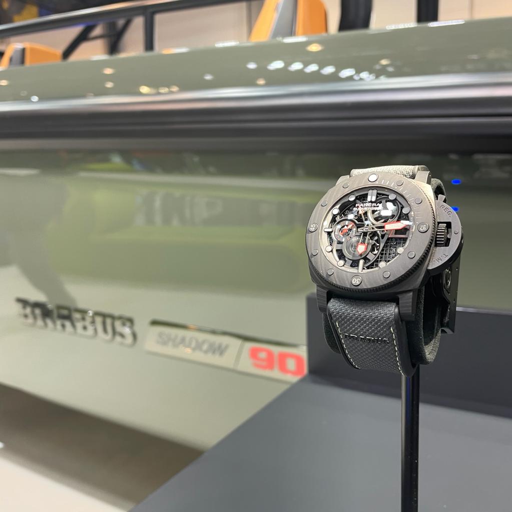 The unveiling of the Stealth Green Signature Edition is synchronized with the launch of the Panerai Submersible S Brabus Verde Militare Edition. A brand new, highly-exclusive dive watch and the latest product of the collaboration between expert Italian watchmaker Panerai and BRABUS. The Panerai Submersible S Brabus Verde Militare Edition features a host of the same hallmark style cues introduced by its predecessors. However, the use of new materials and a completely reimagined signature flair place it well within in a league of its own – conceptualized to perfectly match the day boat in its design and functionality.