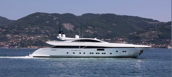 This new yacht, characterised by an aggressive, sleek profile, can ensure outstanding performance, with a maximum speed of up to 30 knots and a cruising speed of 25 knots. The layout reserves large areas for conviviality, both on the main deck – where the living and dining areas as well as the full-beam master cabin can be found – and on the upper deck, which is entirely devoted to life in the open air. The interiors explicitly draw inspiration from the ‘deco’ style, reinterpreted in a modern key. This fascinating parallelism is obtained through the use of mirroring surfaces and fine woods which, together with stylish steel details, highlight the bold shapes of the interiors and create a fascinating contrast between the different materials.