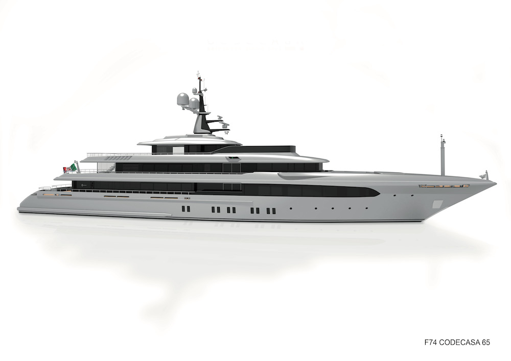 F74, as she is currently known, is a five-decker with a steel hull and aluminium. Her waterlines were designed in-house by Codecasa, while her all-custom interiors are the work of an interior designer brought in by the owner. The build is at such an advanced stage that the hull was moved to the Darsena dei Navicelli di Pisa facility in Viareggio where she is now being fit out. Twin Caterpillar F74 engines will give her a speed of 17 knots at half-load. Her owner takes delivery next summer.