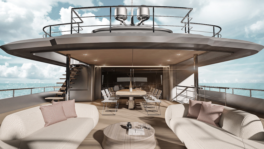 The C127 will have a lift that will serve all decks, a large beach area with a hull door that opens out to create a chic bathing/sunning area, a gym area and a 3 x 3.5m pool on the sun deck. The yacht is scheduled for delivery in summer 2023. We’ll have more information then!