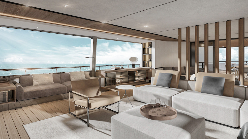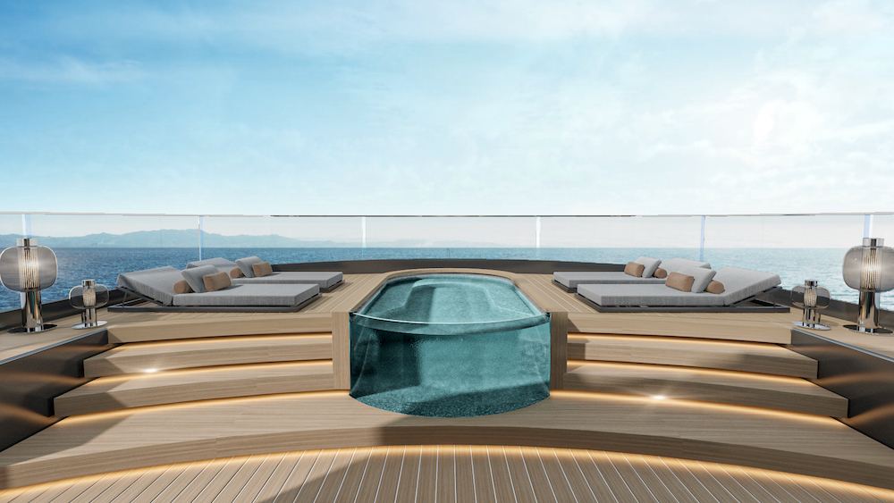 The C127 will have a lift that will serve all decks, a large beach area with a hull door that opens out to create a chic bathing/sunning area, a gym area and a 3 x 3.5m pool on the sun deck. The yacht is scheduled for delivery in summer 2023. We’ll have more information then!