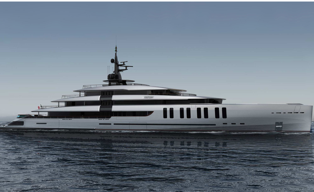 Another innovative feature is the opening side terraces off both the Master and Vip suites. The “total black” design of these terraces creates a distinctive effect on the yacht’s profile — a signature feature of the Gobbi design. Also of note, are the vertical windows in the Vip and guest areas mirror the nearly vertical bow — an effect reminiscent of the automotive industry.