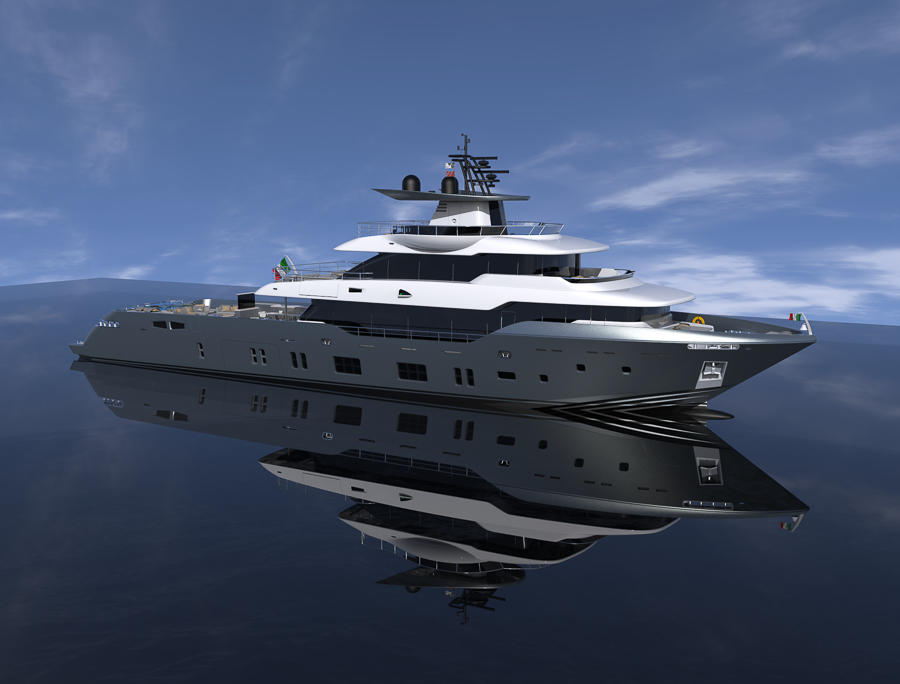 This superyacht will offer an aft deck of about 110 square meters/1184 Sq. feet, with aft Jacuzzi, sun pads, bar, dining room and day head with direct access to the tender bay for a 6-meter tender and plenty of toys located amidship. Underneath the tender bay will be installed a Veem® 145 SD gyroscope stabilization system. The interior of the Oceanic 140’ is being designed by Rome based Michela Reverberi who is used to collaborate with Canados and designed the latest delivered Canados 888.
