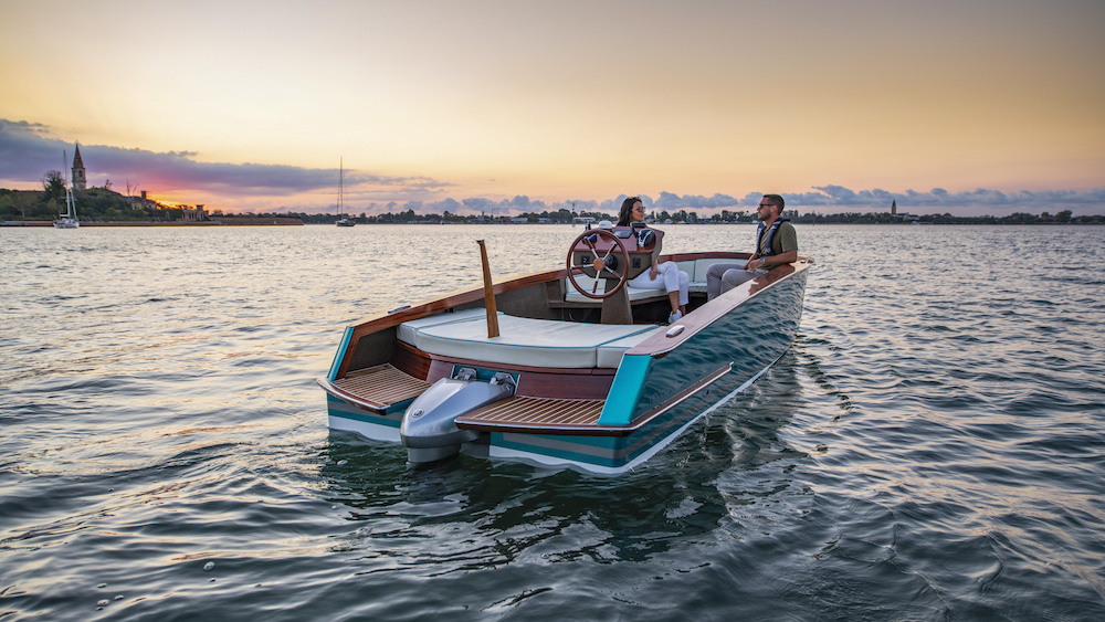 The project is the result of a meeting between the Venmar shipyard in Venice, Studio Cossutti Yacht Design and Yamaha. The external lines are reminiscent of the runabouts and boats that populate the Venice Lagoon. These references to nautical culture are enhanced by the use of noble woods such as mahogany for the deck and the coping, plus teak for the floor. Tradition then gives way to innovation with the use of carbon fibre, basalt and linen to build the hull.