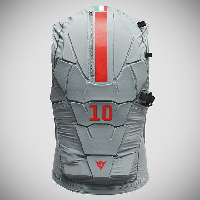 This problem was solved brilliantly thanks to the use of some floating pads on the inside of the back and chest protector. Furthermore, in the first version, this bodice provided an additional protection at the height of the back inspired by the one present on the MotoGP riders’ suits. An oxygen cylinder inside came into operation in the event of capsizing. Subsequent tests led to replace it with a water bag that allowed drinking during the activity while the cylinder, the intercom and the knife were housed in other pockets. Lightness, easy wearing and minimum incumbrance were three other essential requirements. The rest is history.