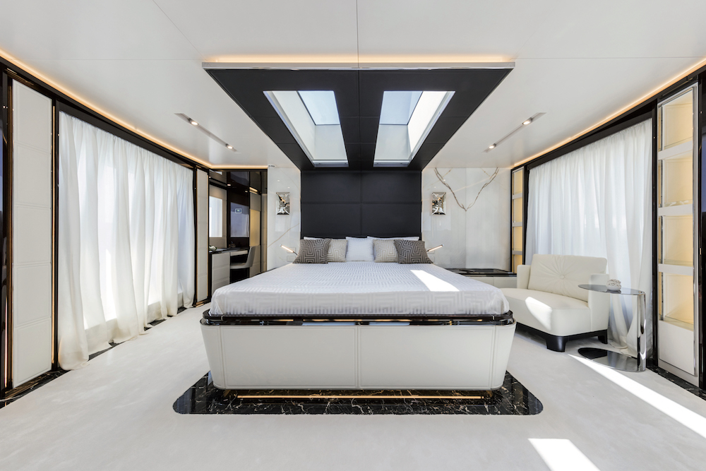 “It’s just one of the aspects of the innovation that drove the yard’s foundation,” continues Bencivenni. “In terms of the naval engineering of the DL Dreamline 34M, that means Giuseppe Arrabito”. A clever choice indeed as Arrabito Naval Architects studio has over 3,000 designs to its credit and when DL Yachts Dreamline asked them to help meet the owner’s new requirements, they produced a dual-functional craft. In other words, it can fairly zip along at about 30 knots but also make more sedate displacement-style progress that will save fuel when called for, translating to a range of 1,800 miles at 10 knots. Noise and vibration have been reduced too as this was vital to allowing guests fully immerse themselves in the direct contact with the sea that architect Enrico Gobbi and Team for Design, who did the interior and exterior design, made their central focus. “This is a yacht with big volumes but its exterior is also dynamic and stylish,” says the designer.