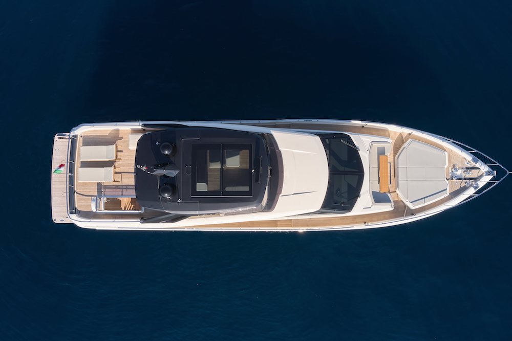 This new model is the result of the cooperation between the Strategic Product Committee chaired by Piero Ferrari, the Ferretti Group Engineering Department, and the Ideaeitalia studio for the interior design and features stylistic elements present both on the entry-level Ferretti Yachts 500 and on the flagship Ferretti Yachts 1000. The most important innovations introduced on the 780 concern the hull windows, the design of which emphasises and slims down the sporty profile of this yacht.
