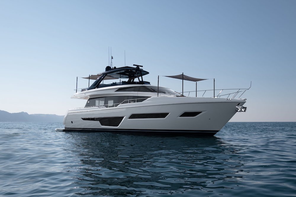 This new model is the result of the cooperation between the Strategic Product Committee chaired by Piero Ferrari, the Ferretti Group Engineering Department, and the Ideaeitalia studio for the interior design and features stylistic elements present both on the entry-level Ferretti Yachts 500 and on the flagship Ferretti Yachts 1000. The most important innovations introduced on the 780 concern the hull windows, the design of which emphasises and slims down the sporty profile of this yacht.