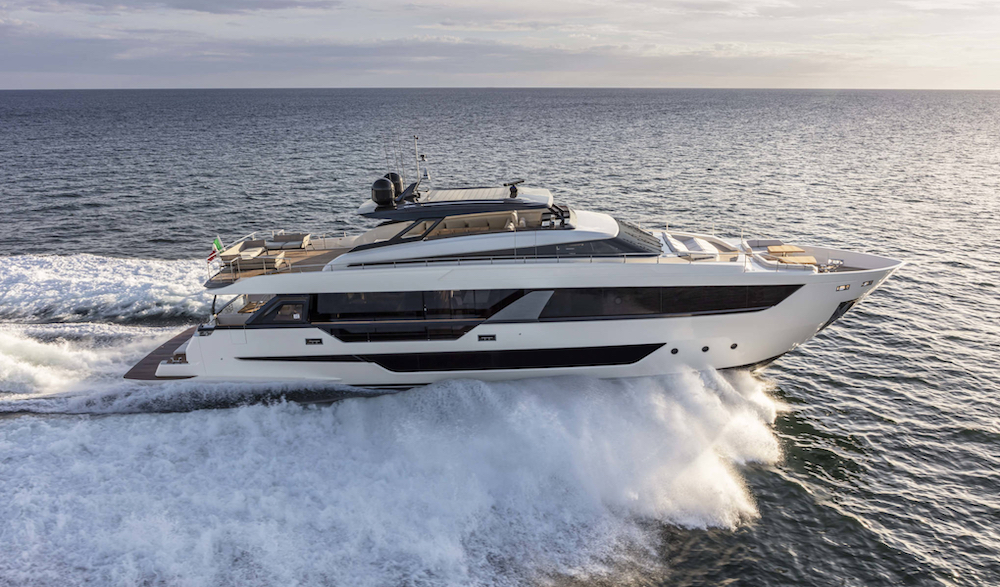 Sticking with a tried and tested layout, the latter is spread over two levels and is very versatile in terms of its uses, which include establishing physical contact with the sea. Which comes as no surprise as the Ferretti Yachts 1000 is a yacht that both promises and delivers a unique emotional experience.
