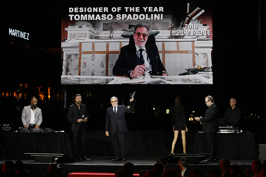 This was an unforgettable week-end in a memorable 2018. Tommaso Spadolini was awarded no fewer than three prizes during the gala evening of the World Yachts Trophies 2018, held in Cannes on 15 September. To begin with, the Italian architect and designer won the much-coveted award in the “Best Designer of the Year” category. “I am delighted with this unexpected but very welcome award,” said Spadolini as he stepped off the stage.