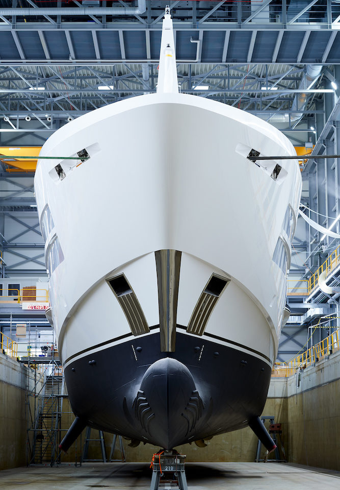 Twelve guests are accommodated in six staterooms, with the master suite located forward on the main deck. Four spacious guest cabins (two double and two twin) are on the lower deck, while the VIP is on the bridge deck. Project Castor is the first in the class to offer the new layout configuration. YN 19055 will be delivered to her Owners in August 2020 after rigorous sea trials in the North Sea.