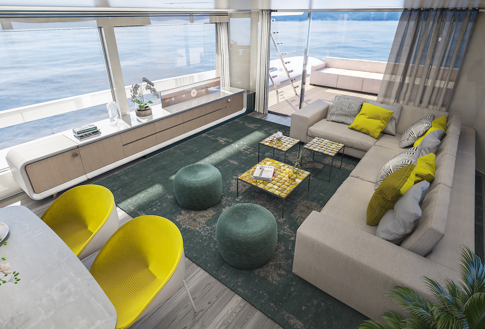 “It is always an honour to design interiors for a new model from a successful yard like Van der Valk as you know the audience is anticipating something special,” comments Antonio Romano, partner and marketing director at Hot Lab.
