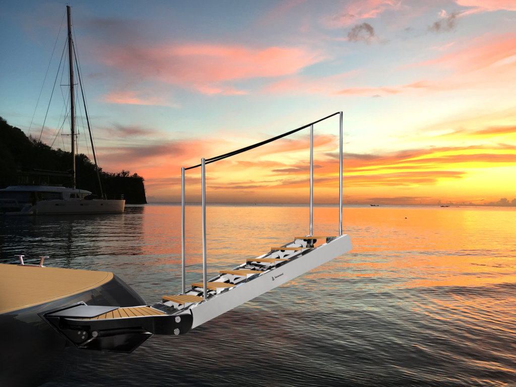 È una scala girevole con movimentazione automatica che abbina la funzione di passerella. Adatta per installazione a poppa o laterale, è dotata di una struttura in acciaio inox che può essere verniciata o lucidata a specchio.