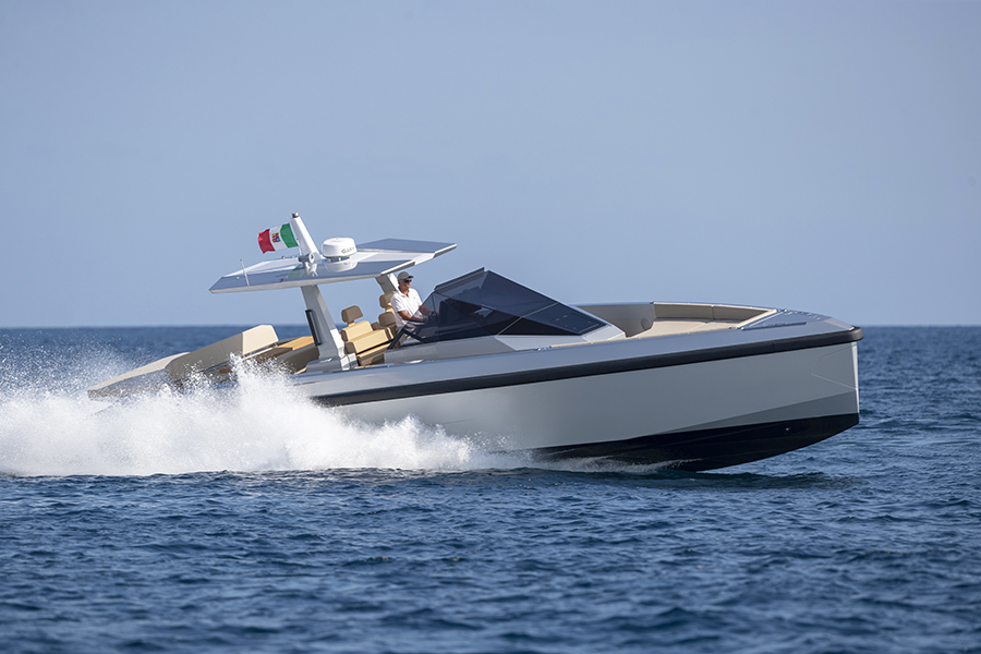 Nato come tender di design per i megayacht, questo open può essere customizzato a piacere e combina un’ottima tenuta di mare con un design d’eccezione. Inoltre, grazie a una chiglia in composito estremamente efficiente, ha un’ottima tenuta di mare e può raggiungere velocità elevate senza compromettere comfort e sicurezza.
