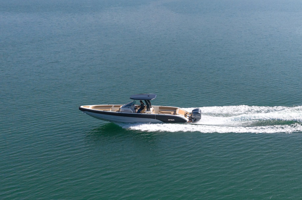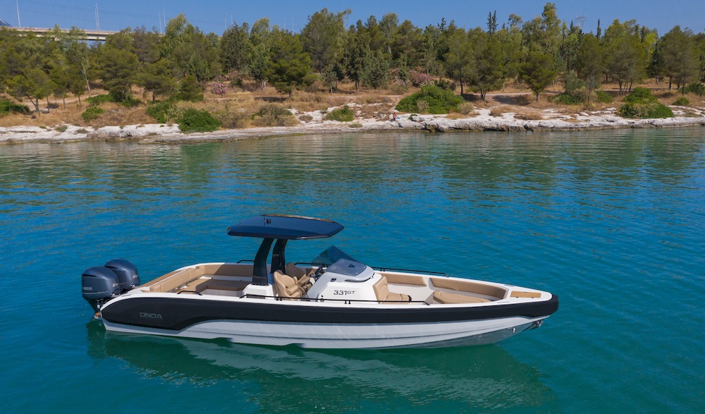 Grazie ai pesi contenuti e all’efficienza della carena, l’Onda 331 Granturismo può raggiungere i 60 nodi di velocità massima anche con una coppia di fuoribordo da 250 hp.