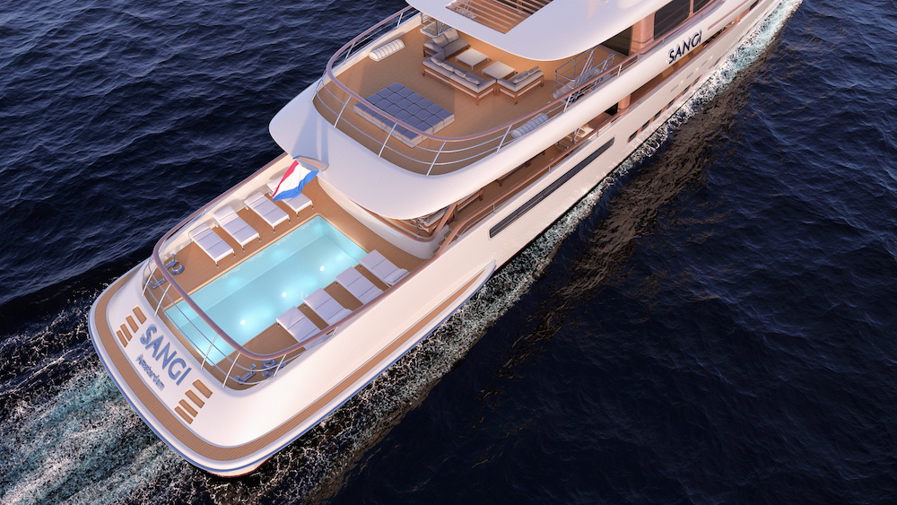 Sangi (cambiamento in Esperanto) è un innovativo ed efficiente 55 metri a motore che riunisce in un unico scafo performance, facilità di guida, autonomia e consumi ridotti.