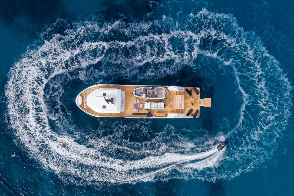 Pensato per crociere affascinati alla scoperta del mondo, questo yacht ha una carena ibrida che gli consente di avere un’ottima tenuta di mare e di avventurarsi in quasi tutti i mari del Globo.
