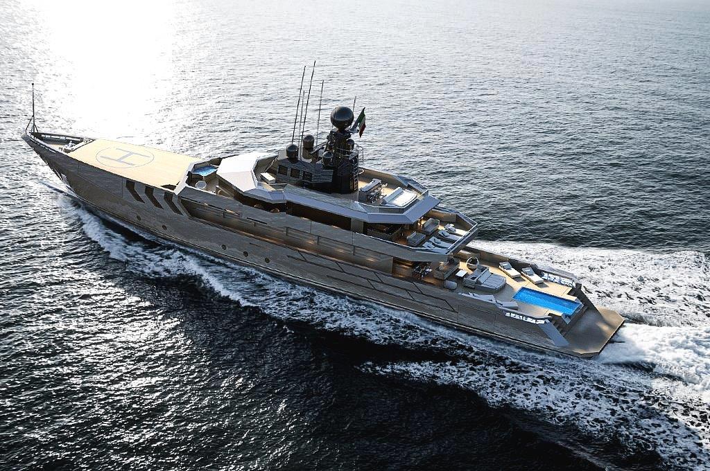 Il disegno presenta una prua alta e imponente che permette di affrontare il mare in sicurezza. Pulizia ed essenzialità delle linee, conferiscono alla nave una personalità unica. A prua, il ponte continuo è stato progettato per ospitare l’area Helipad, mentre l’upper deck è interamente a disposizione della suite armatoriale. Il ponte di poppa di oltre 150 metri quadrati è multifunzionale e adattabile a ogni soluzione e customizzazione.