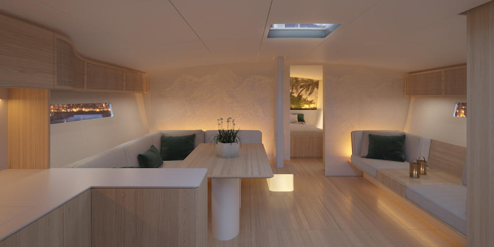 Si tratta di un mezzo con attrezzatura di coperta all’insegna dell’easy sailing e, soprattutto, rigorosamente green ed eco-friendly. Il 68 Café Racer monta infatti un motore elettrico da 30 kW in grado di generare energia in navigazione, è attrezzato con pannelli solari e il legno usato per la coperta è un pino sostenibile. Oltre a ciò, oltre il 50 per cento della struttura dello scafo sarà costruita usando il lino ampliTex Bcomp come rinforzo e sarà quindi ecosostenibile oltre a sfruttare le proprietà fonoisolanti di questo materiale.