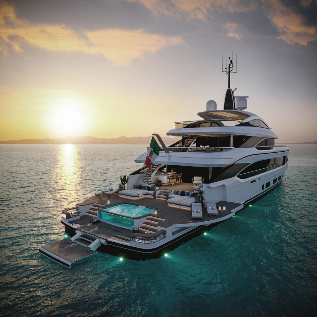 Sulla base di un’inedita ispirazione progettuale nata nel 2017, Benetti lo scorso settembre 2020 ha presentato uno yacht di 40 metri dedicato alla prossima generazione di armatori. Avendo riconosciuto i primi segnali di un trend sempre più in crescita, guidato da un nuovo tipo di armatori di superyacht, che desiderano uno stile di vita decisamente più conviviale, sempre meno formale e a favore di un contatto più stretto con il mare, Benetti ha voluto creare qualcosa che andasse oltre le tradizionali beach area, che generalmente tendono a essere in qualche modo interrotte da murate e cielini, offrendo così lo yacht perfetto per ancorare in rada e immergersi nell’ambiente marino circostante.