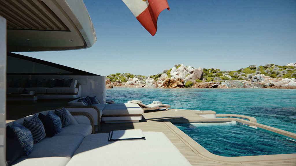 Dei sei rinomati studi di design che hanno presentato le loro proposte nel 2017, è stata la firma inglese dello studio RWD che ha incontrato e rispettato maggiormente la visione di Benetti, addirittura sviluppandola ulteriormente. Il concetto di Oasis 40M ha introdotto dunque una combinazione rivoluzionaria di cinque caratteristiche sul ponte di poppa, tanto da rendere obsoleti i termini “beach club” e “beach area”.