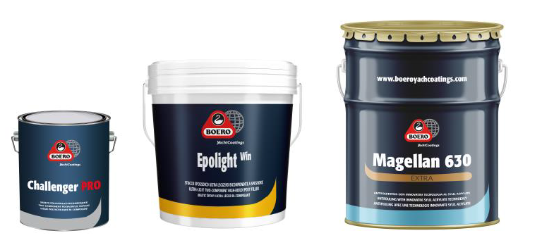 Per assicurare un risultato altamente performante, il full paint system Boero sfrutta le caratteristiche meccaniche di ogni singolo prodotto; in questo caso il sottosmalto epossidico bicomponente Epoply assicura una solida base a supporto del Challenger Pro, la finitura poliacrilica bicomponente studiata per soddisfare le esigenze di durata nelle condizioni di esercizio dello yacht, applicata nella tonalità arancione.