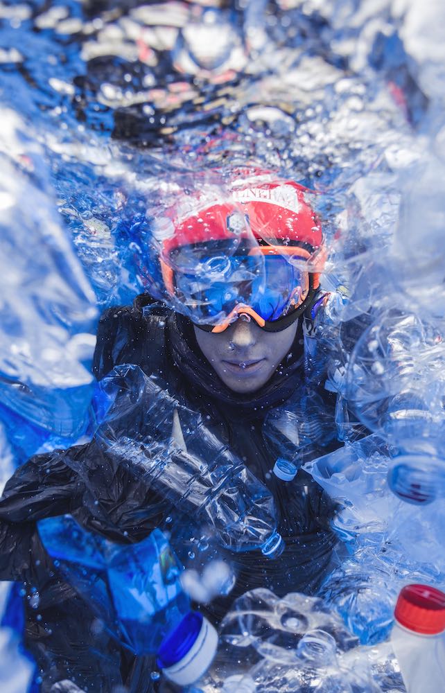 È un progetto nato dalla mia passione per la natura e per l’acqua. Avevo visto alcune foto di Giuseppe La Spada che aveva immortalato delle modelle sott’acqua e mi erano piaciute. Giulia Mancini, la mia manager, lo ha chiamato per coinvolgerlo in un progetto mai fatto prima con uno sciatore e lui ha accettato con entusiasmo. Poi ci siamo resi conto che quegli scatti potevano essere un modo per sensibilizzare le persone al rispetto per il mare e per l’elemento fluido in genere e da allora, ogni estate quando sono un po’ più libera dagli allenamenti, realizziamo una nuova Traiettoria. Siamo alla quinta.