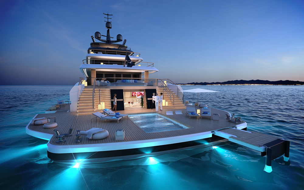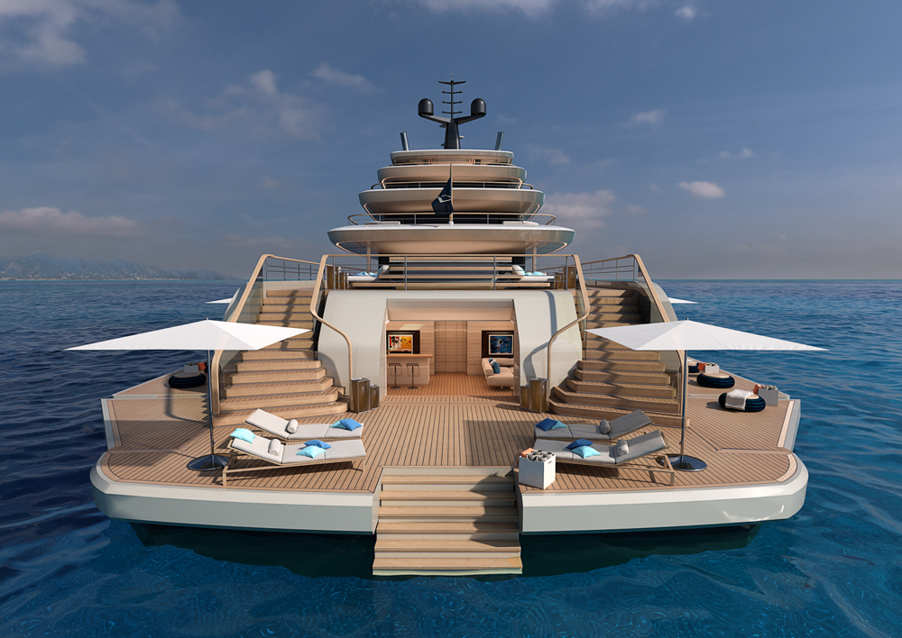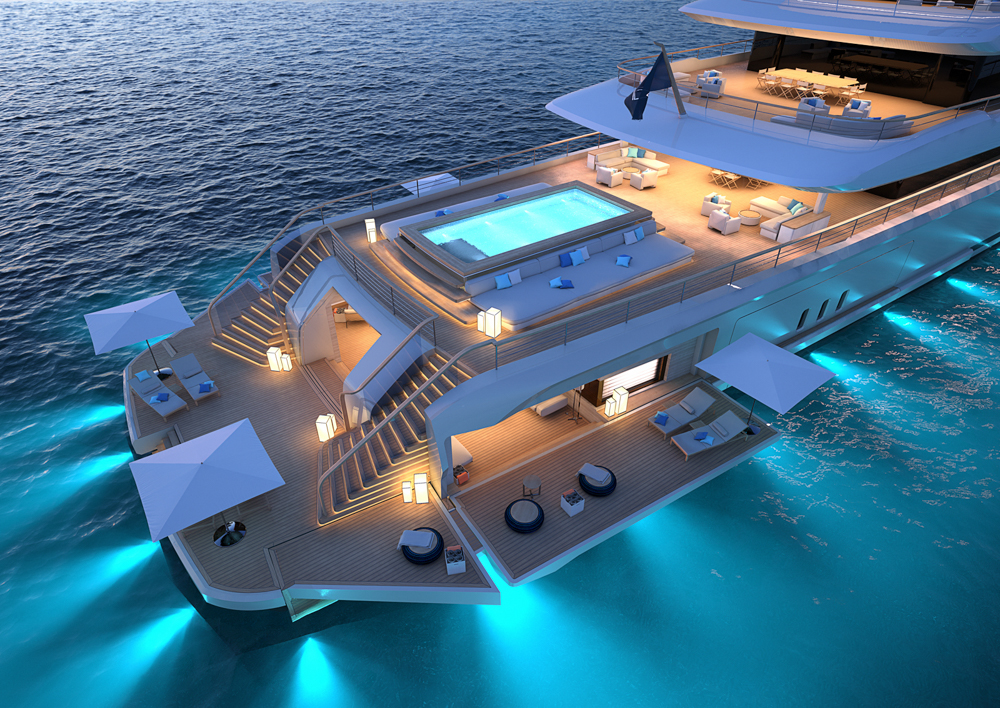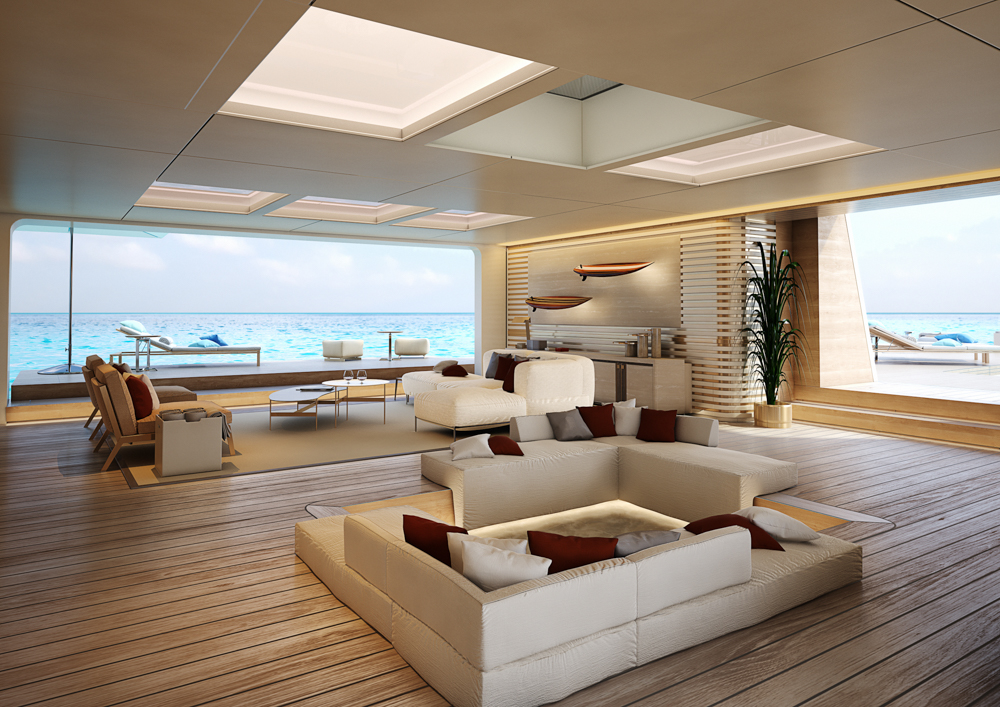 Questo approccio ha guidato i progetti successivi dello studio e ha dato vita a “The Island”, il concept brevettato di una spiaggia di poppa / beach club estensibile interamente dedicato agli ospiti, con murate e portelloni abbattibili. “Il concept ‘The Island’ è nato con il 75 metri Dune, che era stato sviluppato per un cliente che non voleva una piscina a poppa sul ponte principale e ci aveva invece chiesto di creare una connessione senza interruzioni tra il main deck e il mare”, spiega ancora Pedol. “È nata così la nostra idea di aprire quest’area ai lati per aumentarne la superficie, migliorando la circolazione e offrendo così un incredibile contatto col mare. Dopo tutto, il miglior motivo per acquistare un superyacht è quello di poter godere dell’ambiente che ci circonda nel modo più diretto possibile”.