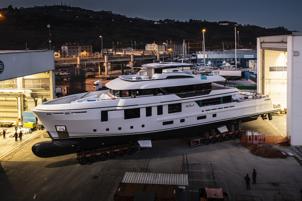 Grande festa al Cantiere delle Marche a fine gennaio per il varo di Acaia che si è svolto alla presenza dell’armatore e della sua famiglia.