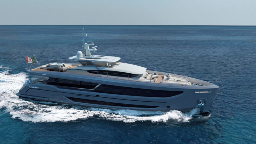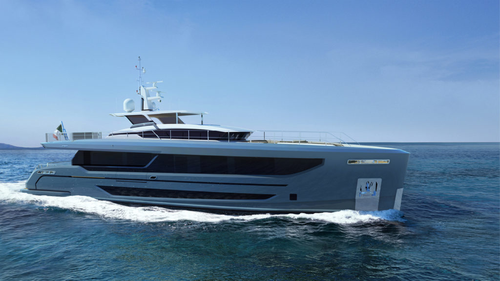 Performante in termini di velocità ma concepito per lunghe navigazioni, questo scafo è un concentrato di efficienza, comfort e design senza tempo. Le sue linee particolari disegnate da Hydro Tec preannunciano una vocazione alle navigazioni sicure, caratterizzato da una prua dritta e da una falchetta rialzata che rende più mascolina e importante la zona dei masconi e delle murate e al contempo contribuisce a offrire maggiore privacy e protezione alle aree esterne; la pilot house ha un profilo basso con parabrezza reverso per un design moderno e particolare.