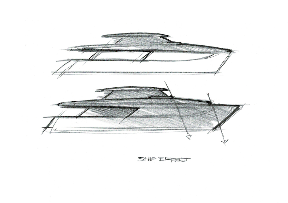 L’ultima nata in casa Custom Line nasce dalla collaborazione tra il Dipartimento Strategico di Prodotto, presieduto dall’Ing. Piero Ferrari, il Dipartimento Engineering di Ferretti Group; lo studio di architettura Antonio Citterio Patricia Viel, che ha curato il progetto d’interni, e Filippo Salvetti, che ha seguito il design delle linee esterne. Per Salvetti che ha già all’attivo diversi progetti per Ferretti Yachts si tratta di una prima assoluta. E proprio da questo giovane ma affermato designer abbiamo voluto iniziare un percorso di tre puntate pensato per raccontare nel dettaglio le linee guida che hanno accompagnato, a tutti i livelli, la genesi di questo progetto.