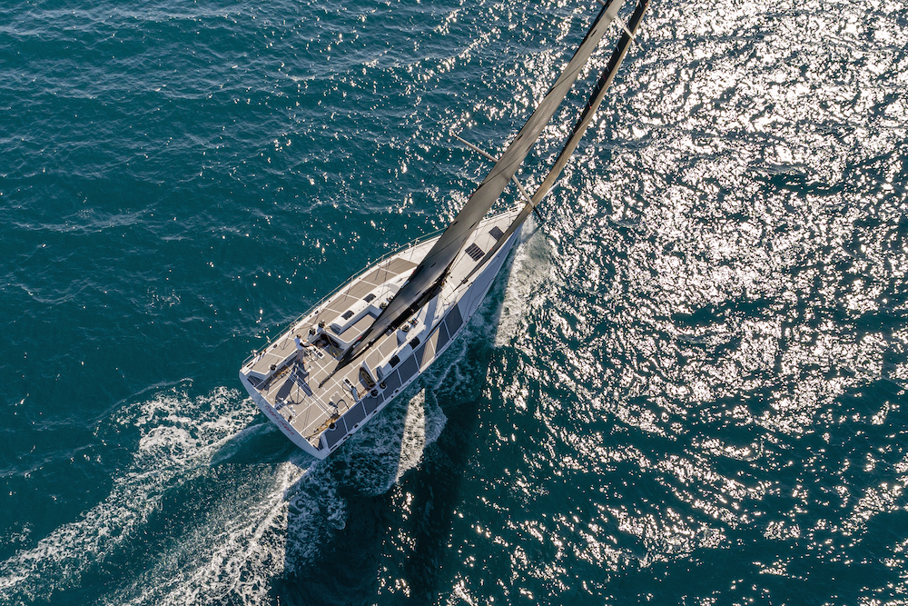 Con lo scafo costruito in infusione di fibra di carbonio e le paratie in pre-preg per la massima rigidità imposta dalla canting keel, il Mylius 60 CK ha chiesto il massimo a cantiere e progettista. «È stata la nostra prima canting keel e sul mercato, racer a parte, sono rare le barche sui 60 piedi con questa soluzione tecnica che ci ha consentito di avere un pescaggio di 3,60 metri» sottolinea Simeone. A un nuovo scafo si è aggiunta una coperta fedele al family feeling di Mylius Yachts, ma dall’impostazione più sportiva.