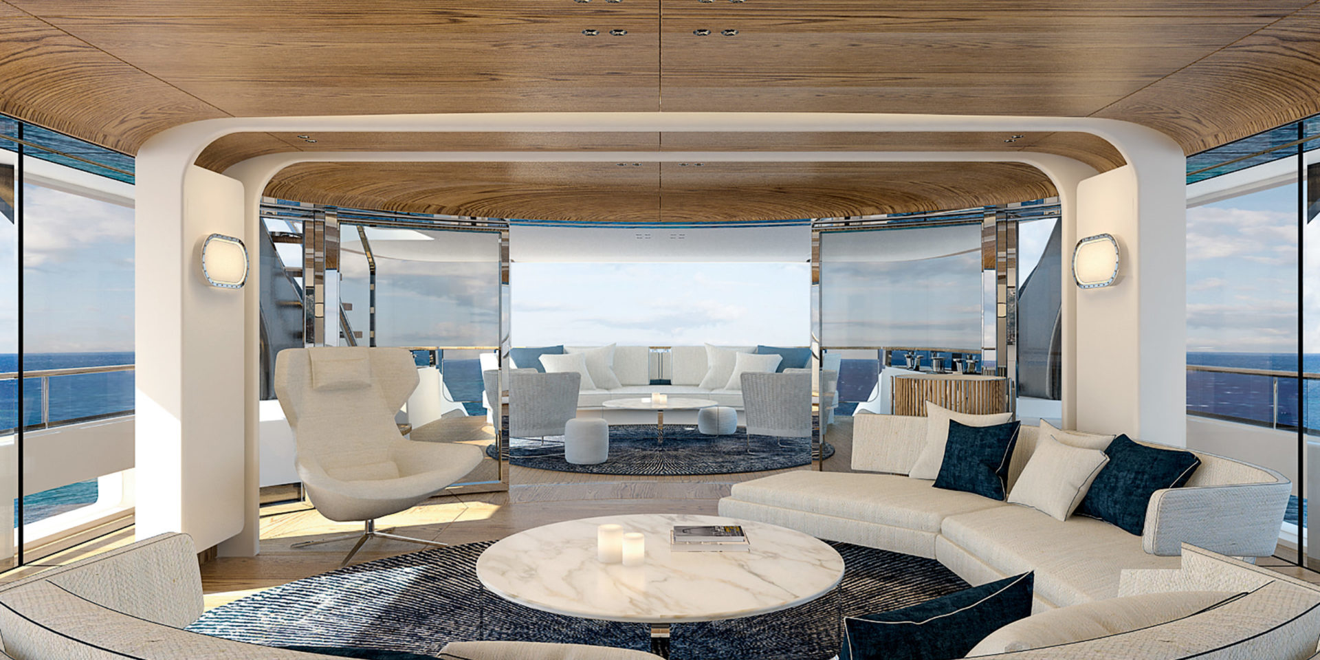 «Avevamo voglia di tornare a fare una barca che fosse tale», spiega Claudio Lazzarini. «Qualcosa che facesse sentire gli ospiti coccolati e protetti ma che, al tempo stesso, interpretasse un nuovo modo di vivere il mare».