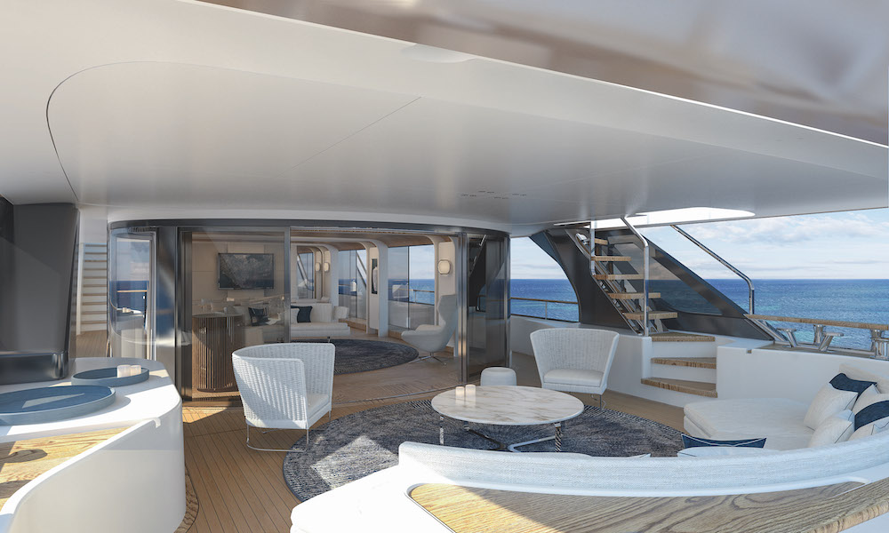 «Avevamo voglia di tornare a fare una barca che fosse tale», spiega Claudio Lazzarini. «Qualcosa che facesse sentire gli ospiti coccolati e protetti ma che, al tempo stesso, interpretasse un nuovo modo di vivere il mare».