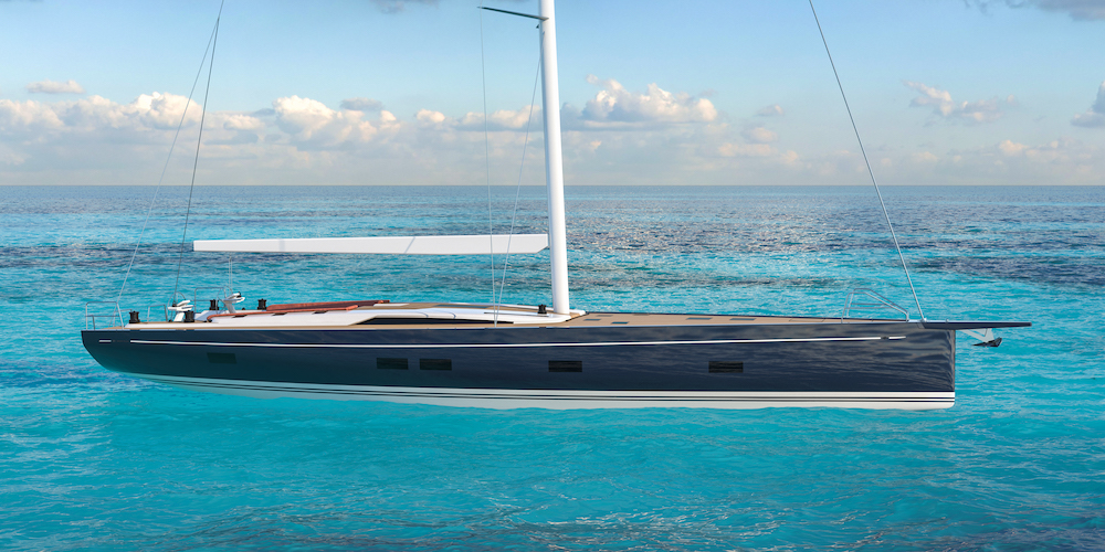 Il piano velico prevede un generoso triangolo di prua e una J accentuata per facilitare il trimming della randa, rendendo la barca più efficiente con venti medio-leggeri e mare corto. L’imbarcazione può essere dotata di trinchetta e strallo, nonché di Code 0 e gennaker. La pala del timone ad alte prestazioni, collocata in posizione molto avanzata, consentirà manovre facili e una guida precisa. La chiglia sarà a T rovesciata con lama weldox e siluro in piombo, ma l’armatore potrà anche optare per una chiglia sollevabile o telescopica. A poppa, un ampio pozzetto ospita due tavoli da caffè e da pranzo utilizzabili separatamente. Queste due aree sono unite da una zona relax con due prendisole.