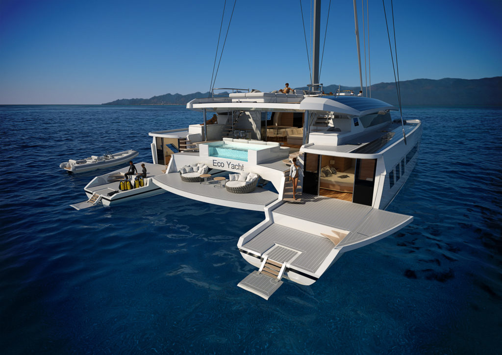 Nei suoi 44 metri, l’Eco145 offre un impressionante spazio vivibile di 260m2 che prevede cinque cabine ospiti doppie più quelle per l’equipaggio di 7/8 persone, piscina ospiti e piscina armatore, beach club e naturalmente ampie zone social e relax. Il layout, sia interno sia interno, può comunque essere personalizzato a piacere.