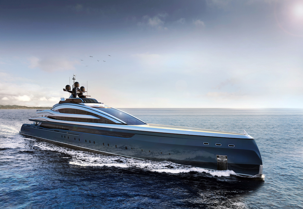 Si chiama Crossbow ed è un elegantissimo progetto di 100 metri disegnato da Sergio Cutolo e dalla sua Hydro Tec che il cantiere Isa ha scelto come ammiraglia della sua linea coupé. Questo avveniristico concept è stato progettato pensando a efficienza e rendimento, ha scafo totalmente realizzato in alluminio e coniuga magistralmente estetica e velocità. Le linee sono incredibilmente affusolate senza che questo sacrifichi i volumi interni. Anzi, alcuni escamotage come il grande parabrezza allungato e curvo consentono soluzioni di layout impensabili, come il salotto interno a doppia altezza. Le aree esterne del ponte sono state progettate pensando alla velocità, mantenendo la luce fissa dei mobili e organizzando tutta la parte relax in modo che sia ben protetta dal vento. A sorpresa, una volta all’ancora, la prua si trasforma in un’ampia e insolita area ricreativa e balneare.