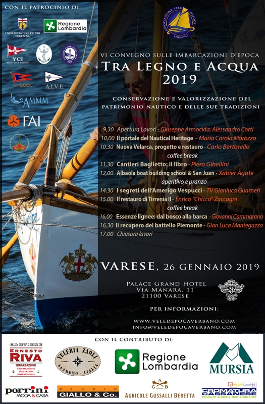 Sabato 26 gennaio 2019la città di Varese si prepara ad accogliere la sesta edizione di “Tra Legno e Acqua”, il Convegno Nazionale sul Recupero e la Valorizzazione delle Imbarcazioni d’Epoca e Storiche organizzato dall’AVEV, Associazione Vele d’Epoca Verbano (www.veledepocaverbano.com), con il contributo della Regione Lombardia.