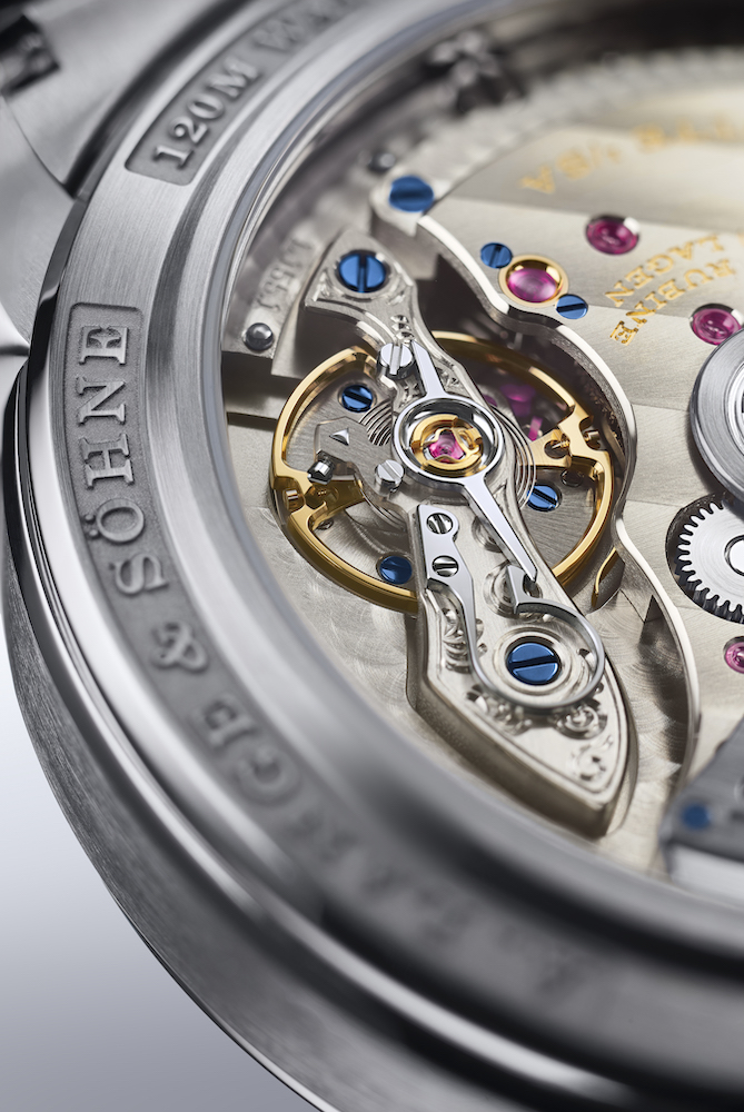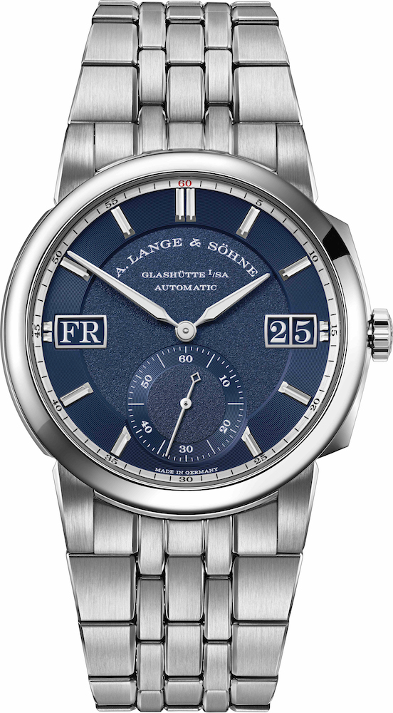 Ma le novità non finiscono qui. A fare notizia è stata la scelta di utilizzare l’acciaio (altra prima assoluta) per realizzare la cassa del diametro di 40,5 mm. L’abilità dei maestri orologiai della Casa sassone è esaltata dalle finiture presenti sul quadrante concepito su più livelli. Linee concentriche incorniciano sia gli indici applicati in oro bianco sia la scala dei piccoli secondi, creando così un piacevole effetto ottico. Sul quadrante gli elementi dominanti sono le due finestrelle che riportano rispettivamente La Grande Data (a destra) e l’indicazione del giorno della settimana sulla sinistra. Le informazioni sono visualizzate all’interno di un display con cifre e lettere bianche su sfondo blu. Ad animare l’Odysseus il calibro di manifattura L155.1 DATOMATIC concepito e sviluppato appositamente per questa referenza. Il movimento a carica automatica è costituito da 99 elementi ed è dotato di una riserva di marcia di 50 ore. Grazie al fondello in vetro zaffiro è possibile apprezzare la meccanica e la lavorazione delle singole componenti. A completare le dotazioni di questo segnatempo, il bracciale in acciaio dotato di fibbia di sicurezza déployant. Non ultimo l’impermeabilità. Come ogni orologio sportivo che si rispetti anche l’Odysseus è stato testato per resistere fino a 120 metri di profondità.