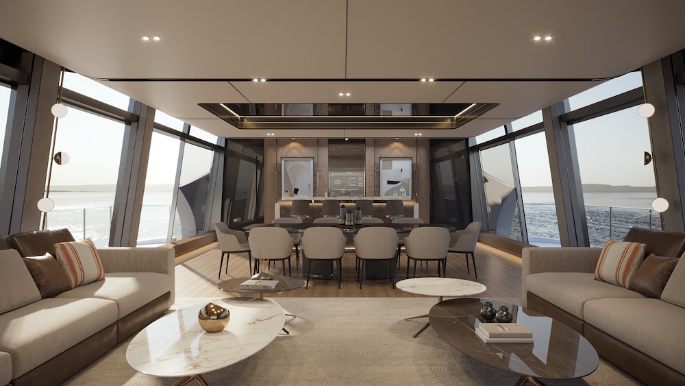 Con i suoi 50 metri di lunghezza fuori tutto il nuovo Mangusta 165 Rev sarà l’ammiraglia della gamma Maxi Open Rev. Disegnato dall’inconfondibile matita di Igor Lobanov, che aveva già disegnato il 104 Rev presentato a Cannes due anni fa, il 165 Rev sfoggia un profilo aggressivo con forme stondate e bombature in puro stile Mangusta. Le sue linee tese e scattanti hanno preso ispirazione, come spiega lo stesso designer, dalle auto sportive degli anni ’30. Una bellezza classica e senza tempo dunque in cui però performance e lifestyle sono stati completamente rivoluzionati e reinterpretati.