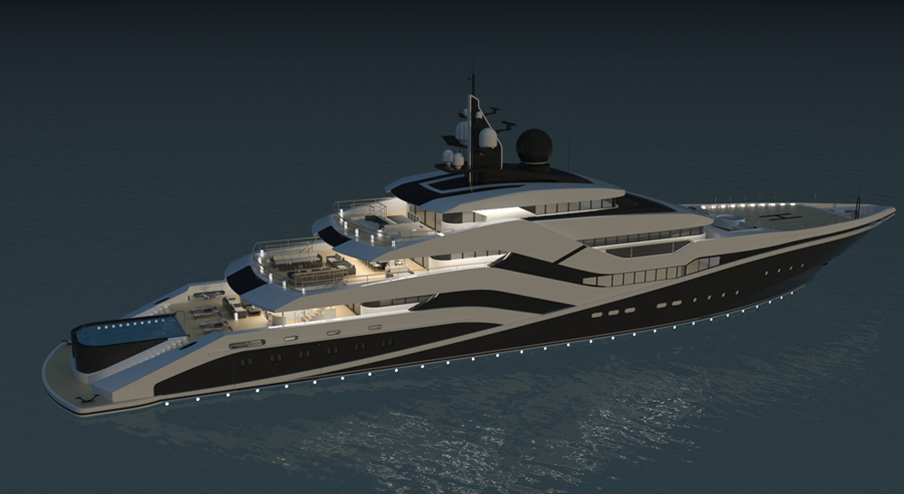 Questo è ovviamente dotato di una piattaforma per il beach club al quale si accede dalla due scale laterali che contornano la piscina. La velocità prevista è di 18 nodi mentre per quanto riguarda l’equipaggio, che alloggia al ponte inferiore è composto da una ventina di persone.