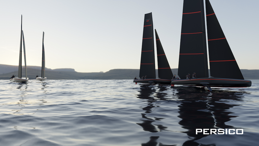 Con il suo profilo filante (12 m di lunghezza, 3,35 m di larghezza per 1,6 tonnellate), il Persico Fly40 è un monoscafo progettato per essere trasportato in container o su un camion. Il sistema di foiling comprende un braccio a doppio canting con foils e un timone a T.